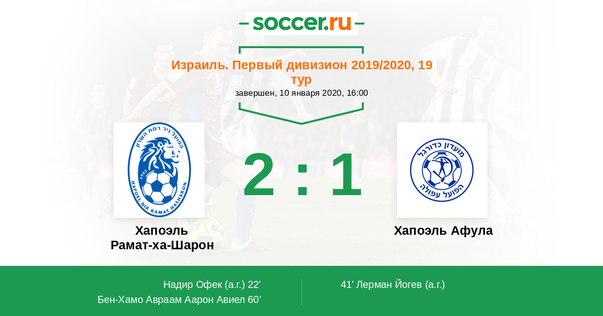 Израиль. Первый дивизион 13.11.2020 Хапоэль Рамат-ха-Шарон Логотип футбольный клуб Хапоэль Рамат-ха-Шарон 1:0 Логотип футбольный клуб Хапоэль Афула Хапоэль Афула