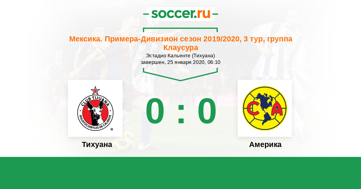 Мексика. Примера-Дивизион 04.03.2021 Тихуана Логотип футбольный клуб Тихуана 0:2 Логотип футбольный клуб Америка (Мехико) Америка