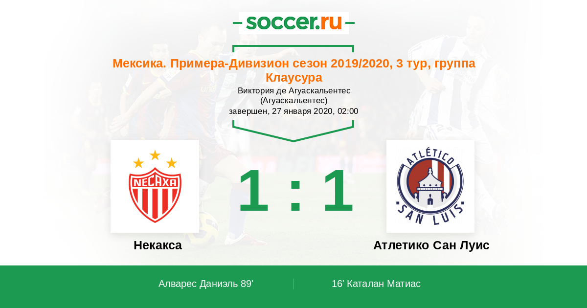 Мексика. Примера-Дивизион 16.01.2021 Некакса Логотип футбольный клуб Некакса (Агуаскальентес) 1:0 Логотип футбольный клуб Атлетико Сан Луис (Сан-Луис-Потоси) Атлетико Сан Луис