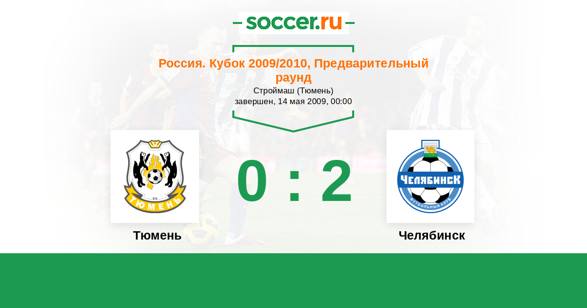 Россия. Кубок 29.04.2010 Челябинск Логотип футбольный клуб Челябинск 2:0 Логотип футбольный клуб Тюмень Тюмень