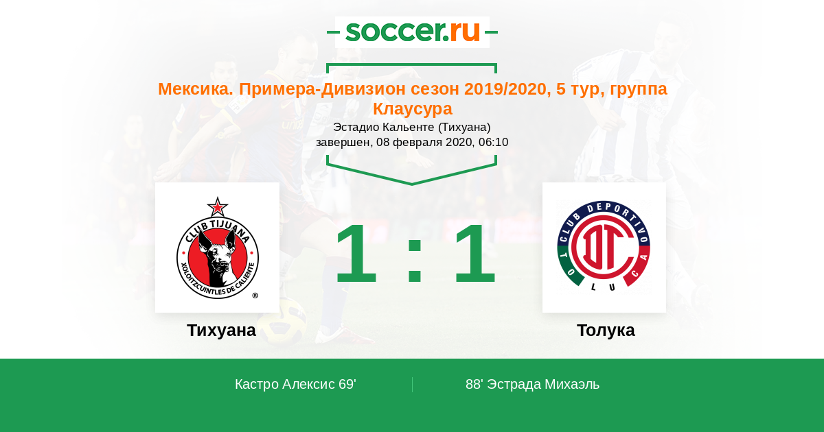 Мексика. Примера-Дивизион 26.02.2012 Тихуана Логотип футбольный клуб Тихуана 1:1 Логотип футбольный клуб Толука Толука