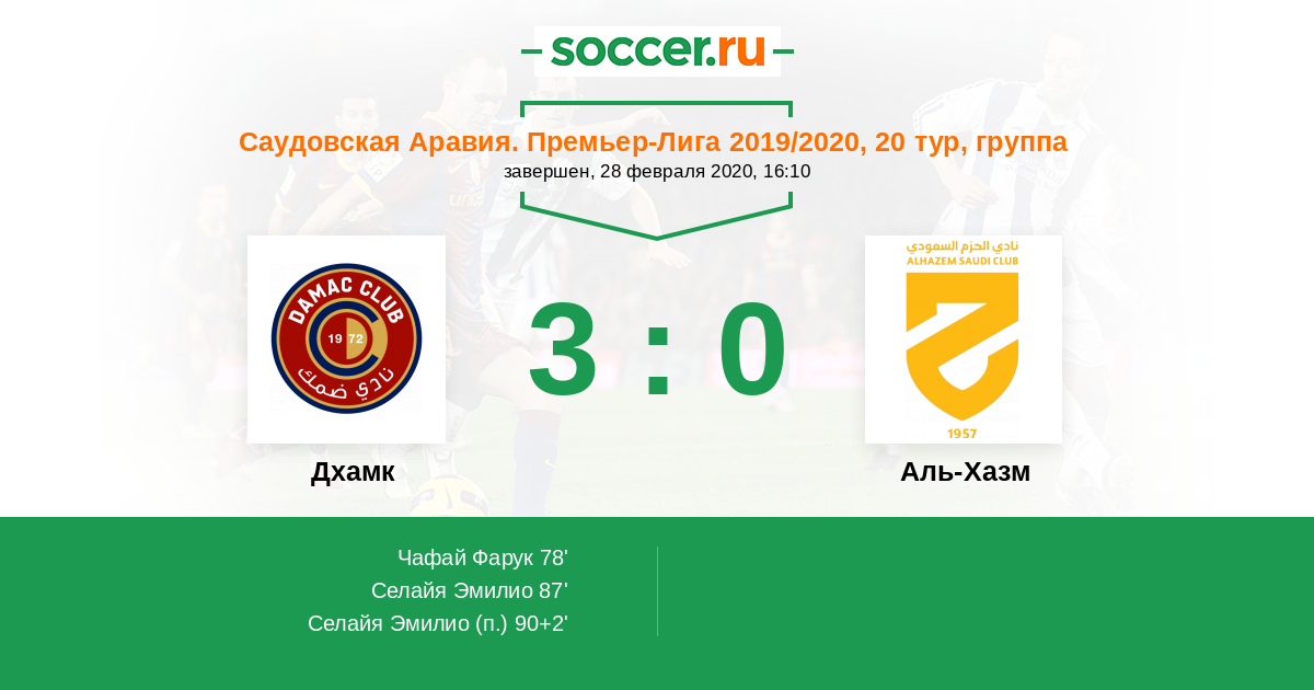 Саудовская Аравия. Премьер-Лига 12.03.2022 Аль-Хазм Логотип футбольный клуб Аль-Хазм (Эр-Расс) 0:1 Логотип футбольный клуб Дамак (Хамис-Мушайт) Дамак