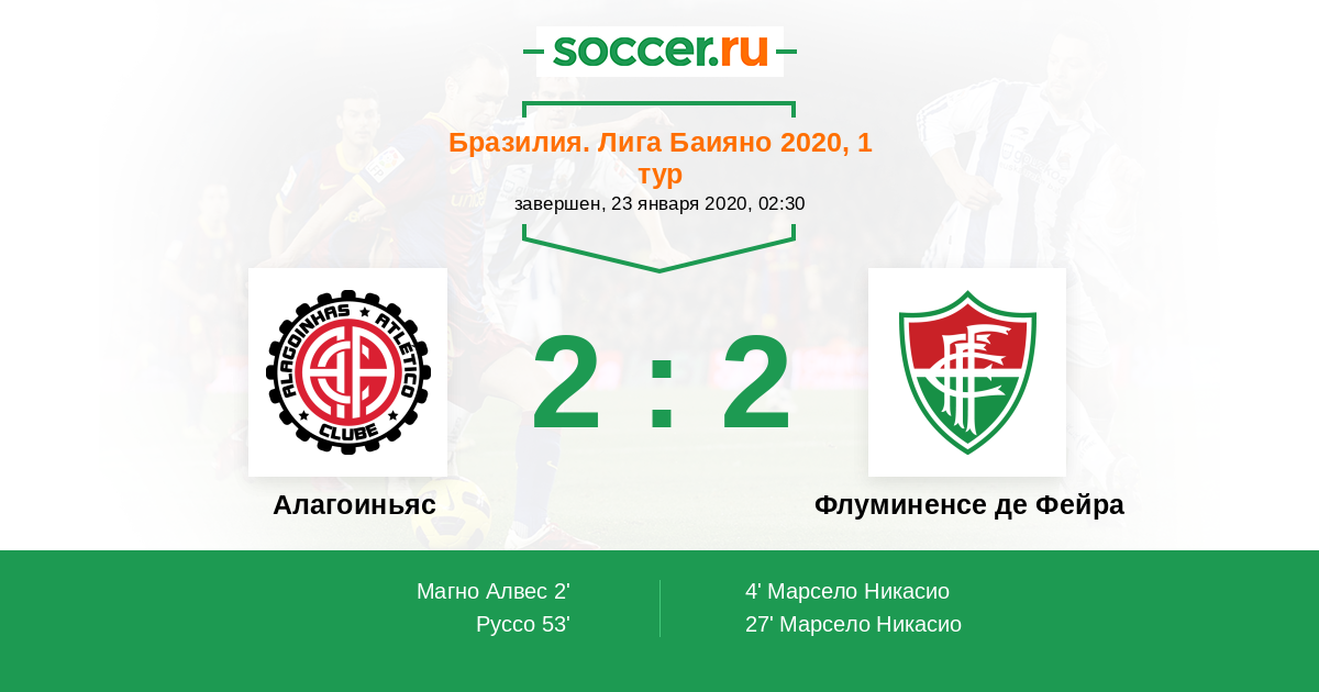 Бразилия. Байано 2 26.04.2014 Алагоиньяс Логотип футбольный клуб Алагоиньяс 0:0 Логотип футбольный клуб Флуминенсе де Фейра (Фейра-ди-Сантана) Флуминенсе де Фейра