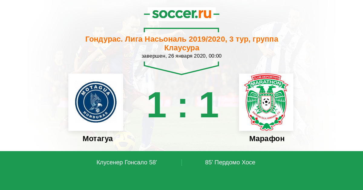 Гондурас. Лига Насьональ 26.10.2020 Мотагуа Логотип футбольный клуб Мотагуа (Тегусигальпа) 1:1 Логотип футбольный клуб Марафон (Сан-Педро-Сула) Марафон