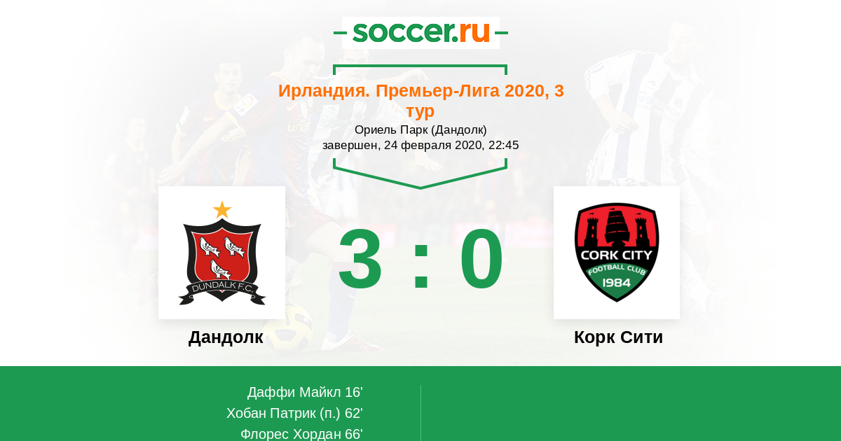 Ирландия. Премьер-лига 18.03.2016 Дандолк Логотип футбольный клуб Дандолк 0:1 Логотип футбольный клуб Корк Сити Корк Сити