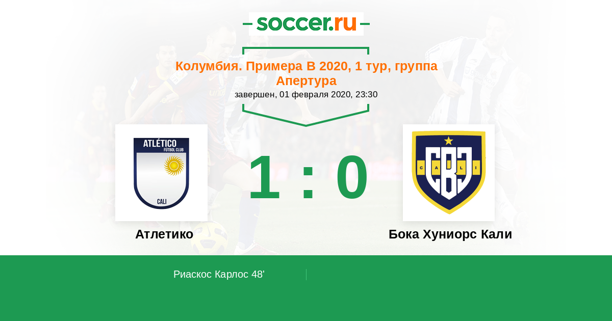 Колумбия. Примера B 18.08.2019 Атлетико Кали Логотип футбольный клуб Атлетико Кали 2:1 Логотип футбольный клуб Бока Хуниорс Кали (Сантьяго-де-Кали) Бока Хуниорс Кали