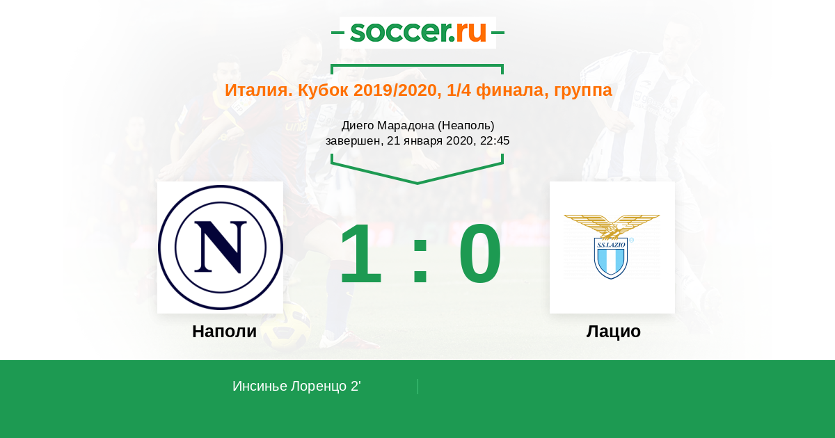 Италия. Серия А 20.12.2020 Лацио Логотип футбольный клуб Лацио (Рим) 2:0 Логотип футбольный клуб Наполи (Неаполь) Наполи