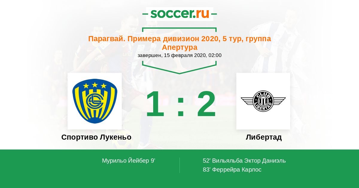Парагвай. Примера дивизион 22.02.2015 Либертад Логотип футбольный клуб Либертад (Асунсьон) 2:0 Логотип футбольный клуб Спортиво Лукеньо Спортиво Лукеньо