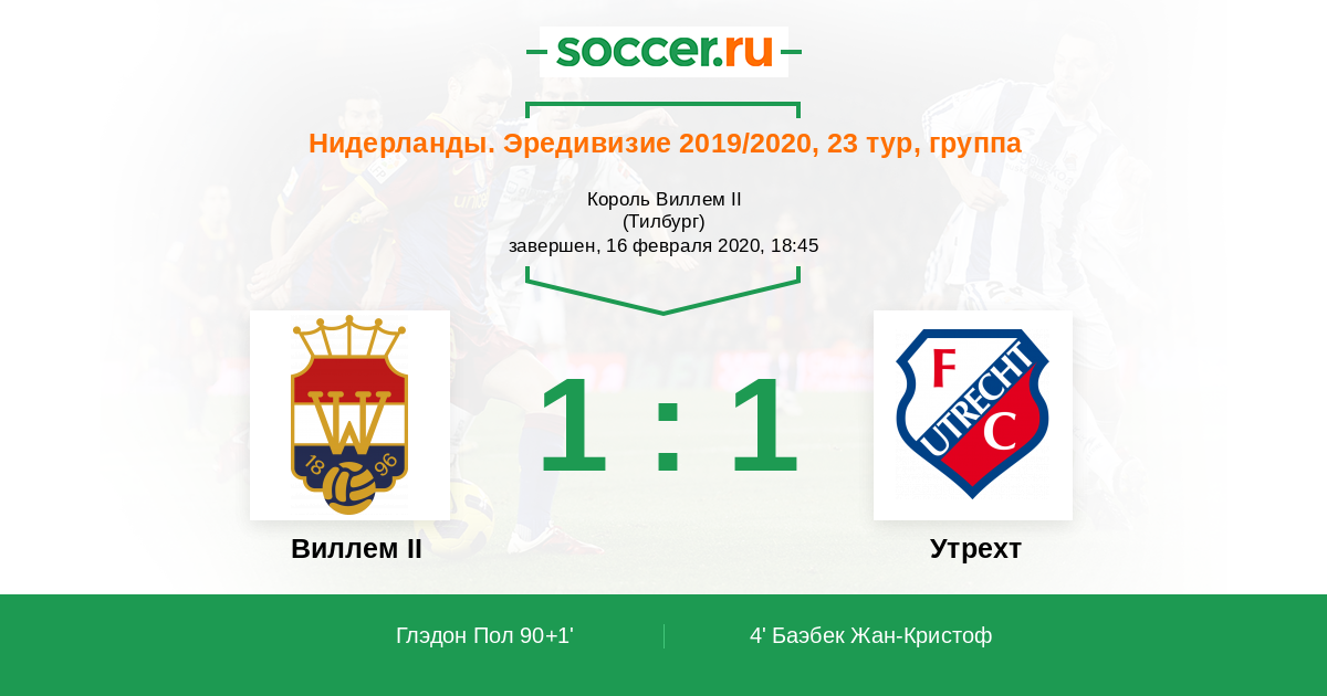 Нидерланды. Эредивизи 21.02.2016 Утрехт Логотип футбольный клуб Утрехт 2:1 Логотип футбольный клуб Виллем II (Тилбург) Виллем II