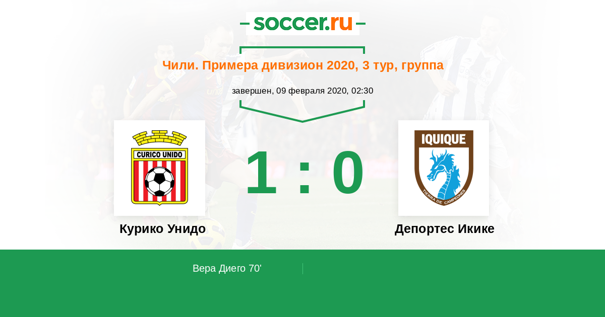 Чили. Примера дивизион 16.02.2019 Депортес Икике Логотип футбольный клуб Депортес Икике 0:0 Логотип футбольный клуб Курико Унидо Курико Унидо