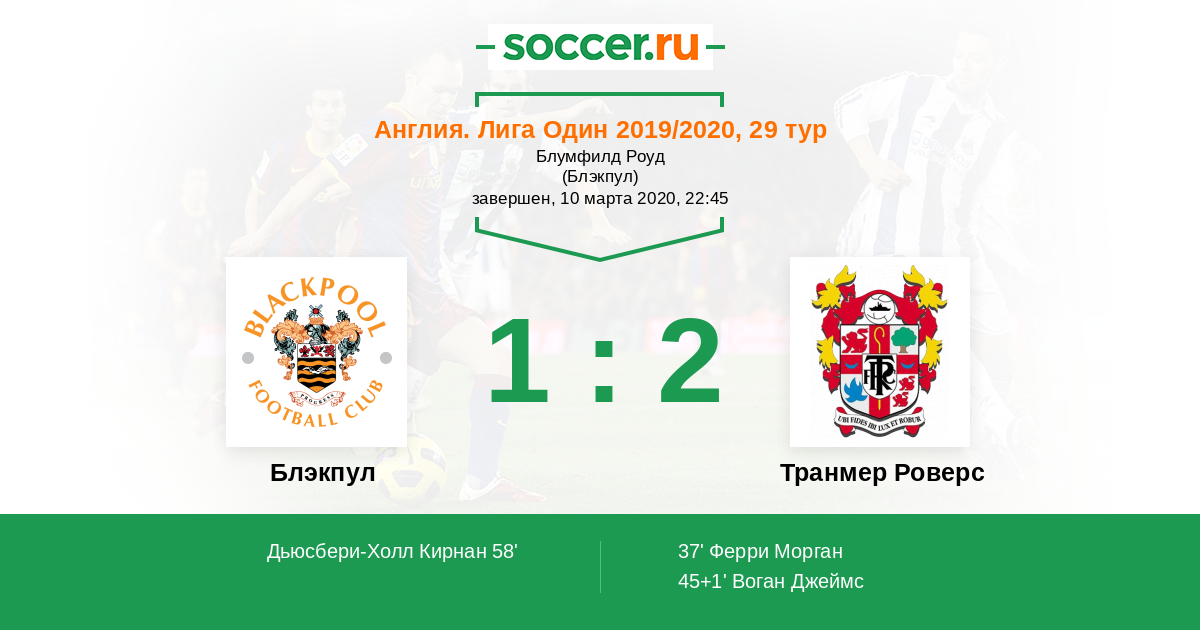 Англия. Первая Футбольная Лига 29.12.2019 Транмер Роверс Логотип футбольный клуб Транмер Роверс 1:1 Логотип футбольный клуб Блэкпул Блэкпул