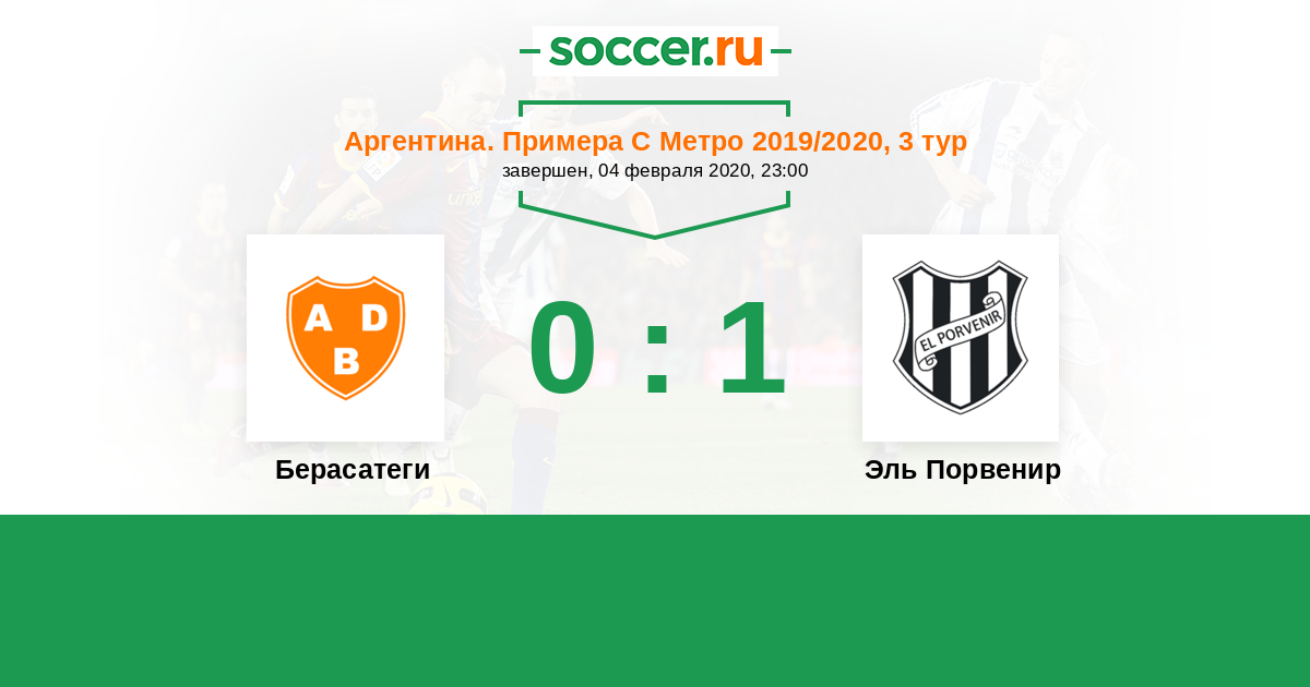 Аргентина. Примера С Метро 06.04.2019 Берасатеги Логотип футбольный клуб Берасатеги (Буэнос-Айрес) 1:1 Логотип футбольный клуб Эль Порвенир (Буэнос-Айрес) Эль Порвенир