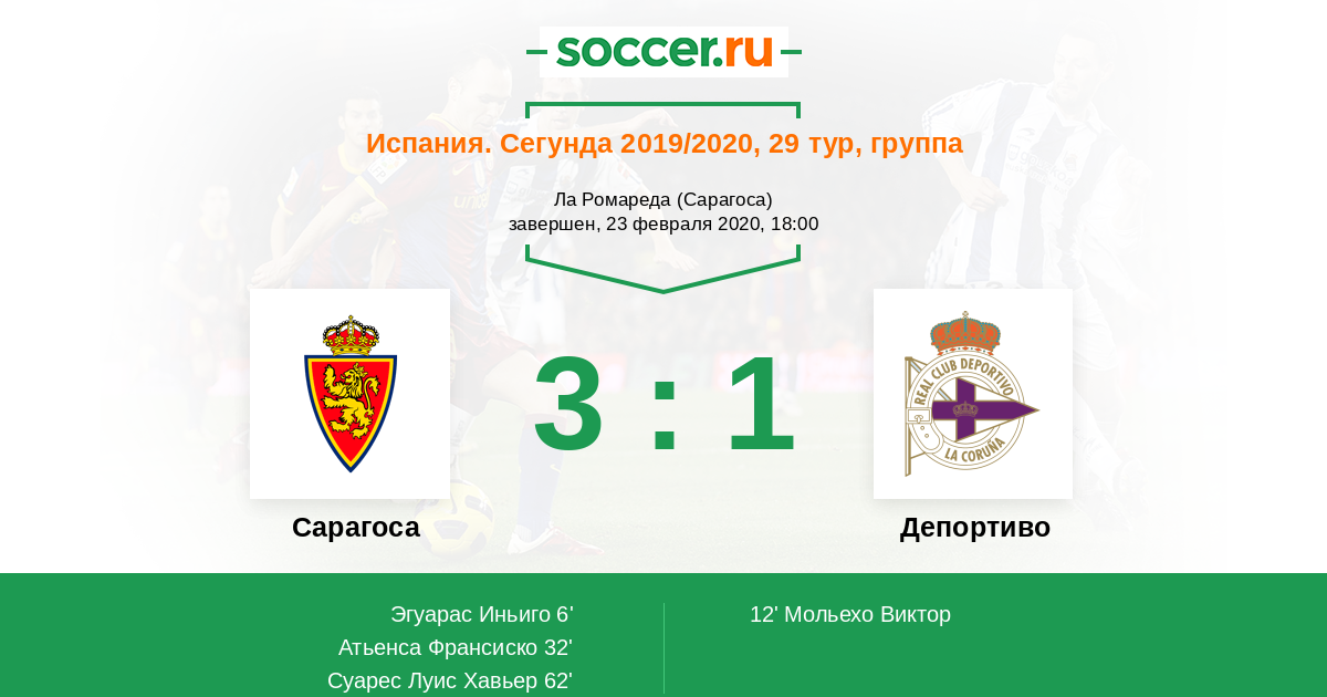 Испания. Сегунда 16.12.2018 Депортиво Логотип футбольный клуб Депортиво (Ла-Корунья) 3:1 Логотип футбольный клуб Сарагоса Сарагоса