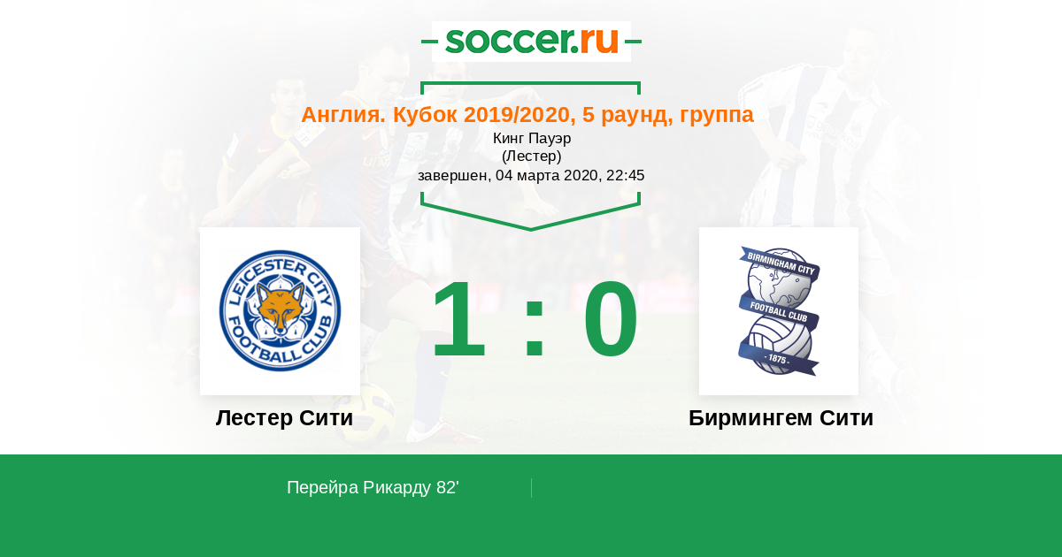 Англия. Кубок 27.01.2024 Лестер Сити Логотип футбольный клуб Лестер Сити 3:0 Логотип футбольный клуб Бирмингем Сити Бирмингем Сити