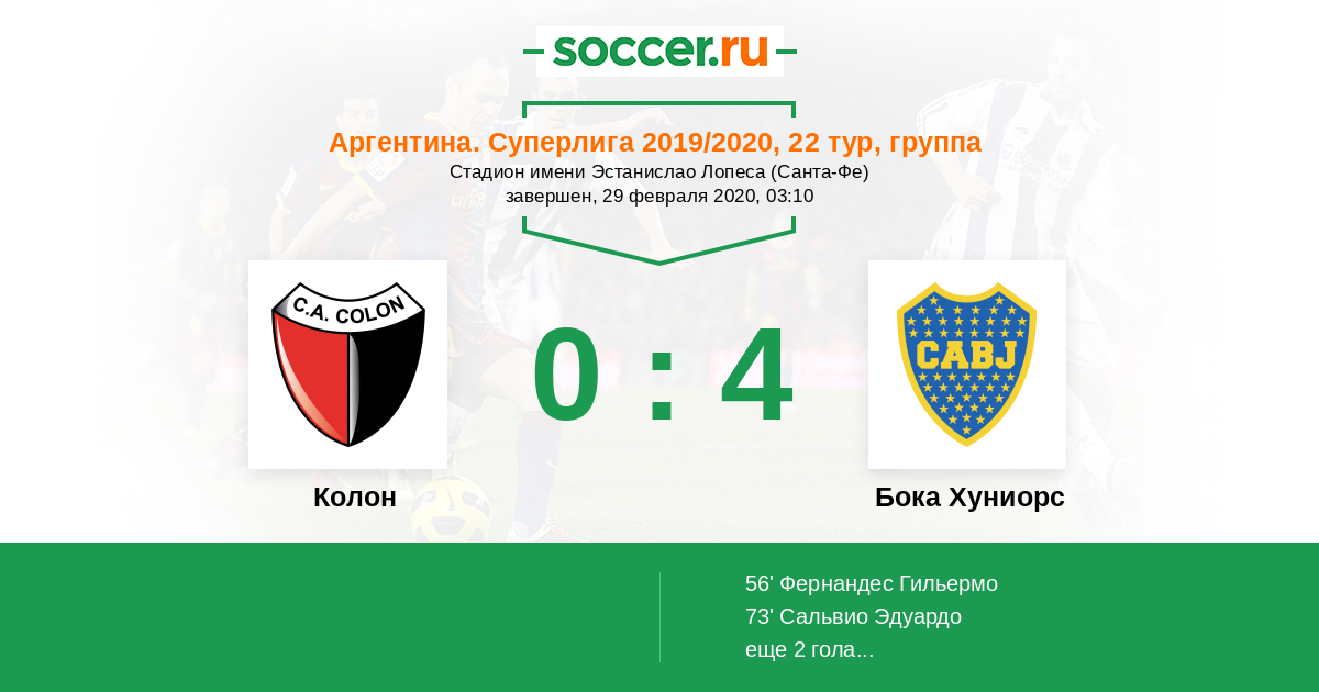 Аргентина. Суперлига 05.09.2022 Колон Логотип футбольный клуб Колон (Санте-Фе) 1:2 Логотип футбольный клуб Бока Хуниорс (Буэнос-Айрес) Бока Хуниорс