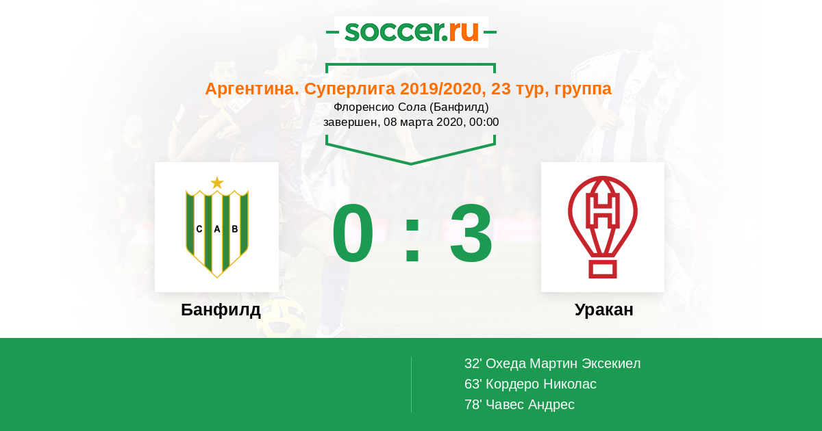 Аргентина. Суперлига 31.03.2018 Уракан Логотип футбольный клуб Уракан (Буэнос-Айрес) 1:1 Логотип футбольный клуб Банфилд Банфилд