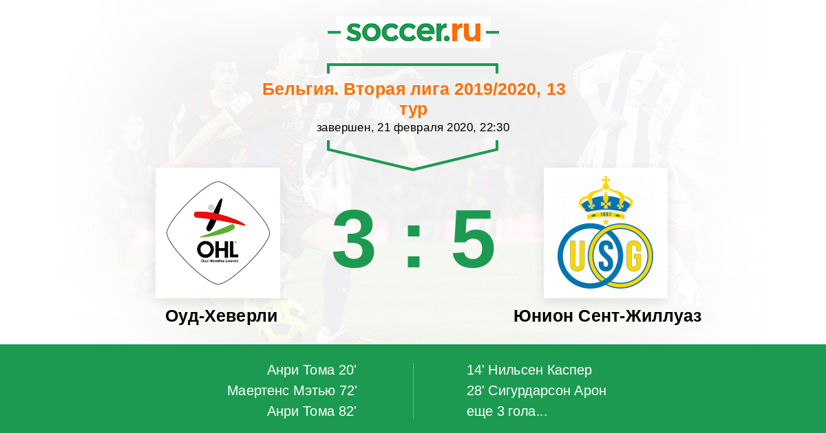 Бельгия. Про-Лига 02.03.2024 Оуд-Хеверли Логотип футбольный клуб Оуд-Хеверли (Левен) 0:2 Логотип футбольный клуб Юнион Сент-Жиллуаз (Брюссель) Юнион Сент-Жиллуаз
