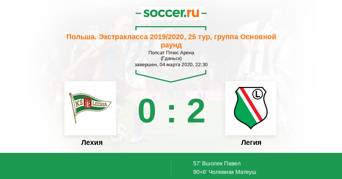 Польша. Экстракласса 05.12.2020 Легия Логотип футбольный клуб Легия (Варшава) 2:0 Логотип футбольный клуб Лехия (Гданьск) Лехия