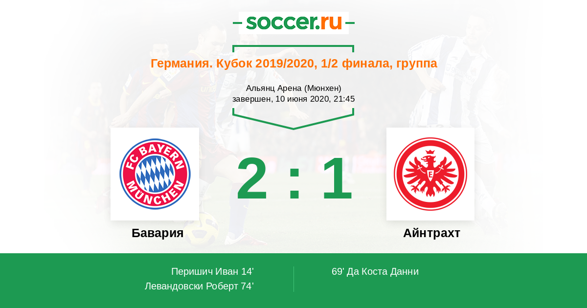 Германия. Бундеслига 23.05.2020 Бавария Логотип футбольный клуб Бавария (Мюнхен) 5:2 Логотип футбольный клуб Айнтрахт (Франкфурт) Айнтрахт