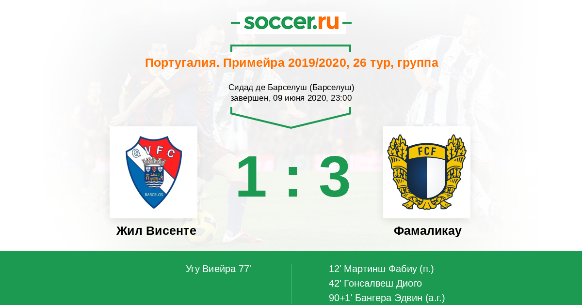 Португалия. Примейра 27.12.2020 Фамаликау Логотип футбольный клуб Фамаликау (Вила Нова де Фамаликау) 0:1 Логотип футбольный клуб Жил Висенте (Барселуш) Жил Висенте