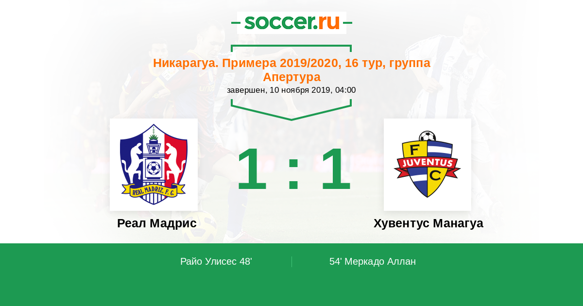Никарагуа. Примера 25.10.2017 Хувентус Манагуа Логотип футбольный клуб Хувентус Манагуа 1:1 Логотип футбольный клуб Реал Мадрис (Сомото) Реал Мадрис