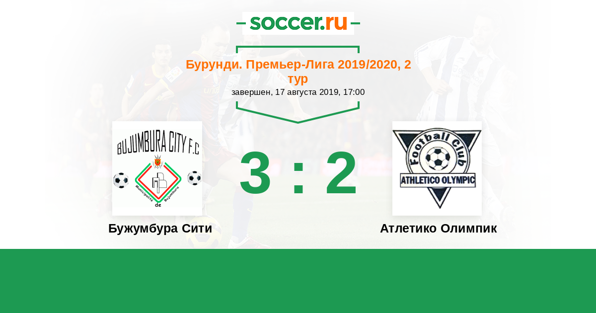 Бурунди. Премьер-лига 04.04.2020 Ле Льеррес Логотип футбольный клуб Ле Льеррес (Бужумбура) 1:3 Логотип футбольный клуб Атлетико Олимпик Атлетико Олимпик