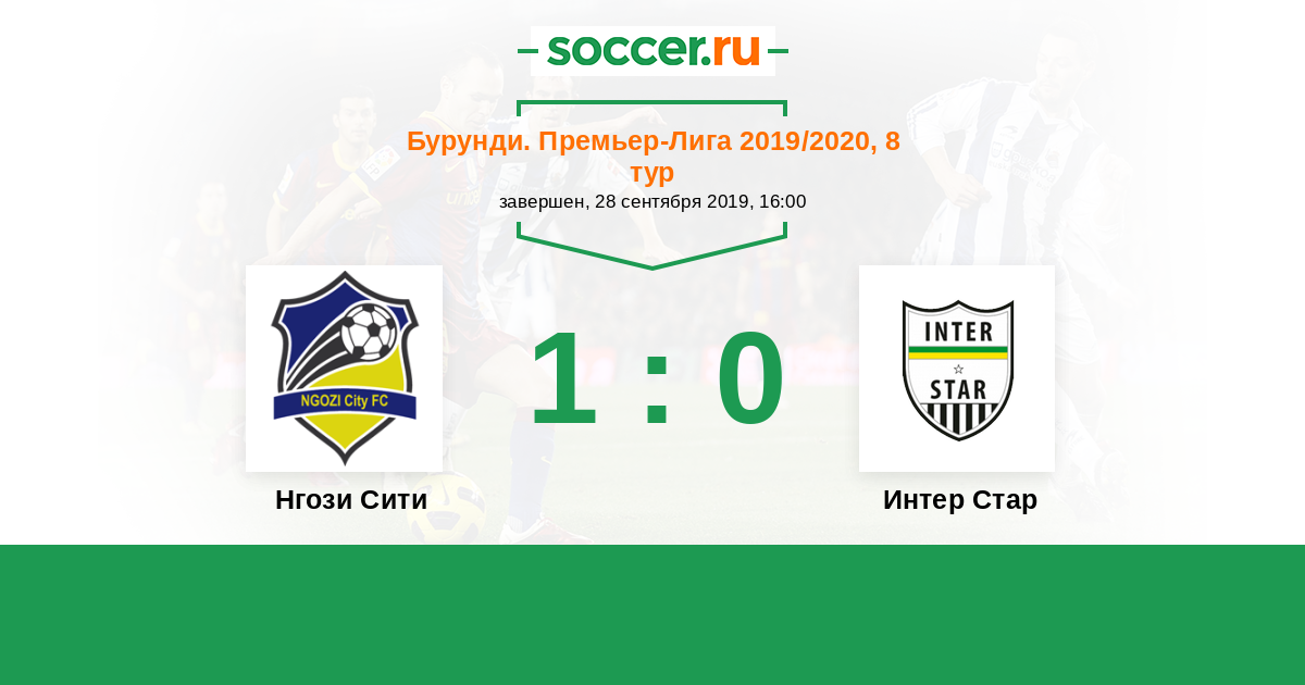 Бурунди. Премьер-лига 03.04.2020 Интер Стар Логотип футбольный клуб Интер Стар (Бужумбура) 1:1 Логотип футбольный клуб Нгози Сити (Мвумба) Нгози Сити
