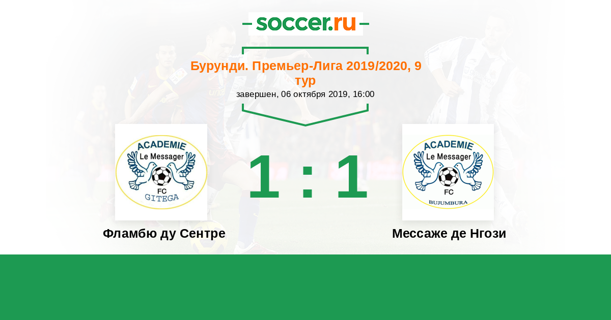 Бурунди. Премьер-лига 22.03.2020 Мусонгати Логотип футбольный клуб Мусонгати (Гитега) 1:1 Логотип футбольный клуб Мессаже де Нгози Мессаже де Нгози