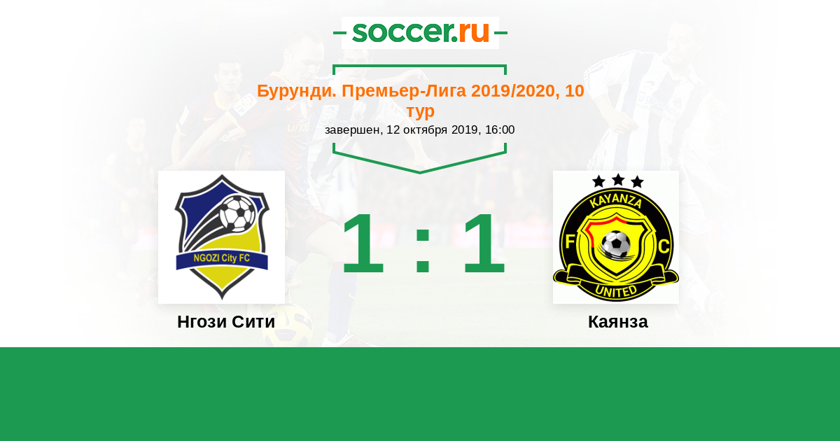 Бурунди. Премьер-лига 15.02.2020 Каянза Логотип футбольный клуб Каянза (Муйинга) 1:0 Логотип футбольный клуб Нгози Сити (Мвумба) Нгози Сити