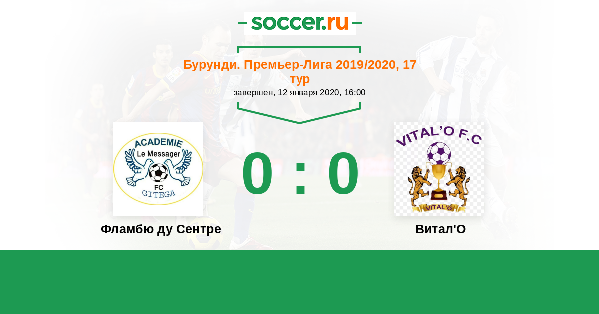 Бурунди. Премьер-лига 22.02.2020 Атлетико Олимпик Логотип футбольный клуб Атлетико Олимпик 2:1 Логотип футбольный клуб Фламбю ду Сентре (Гитега) Фламбю ду Сентре