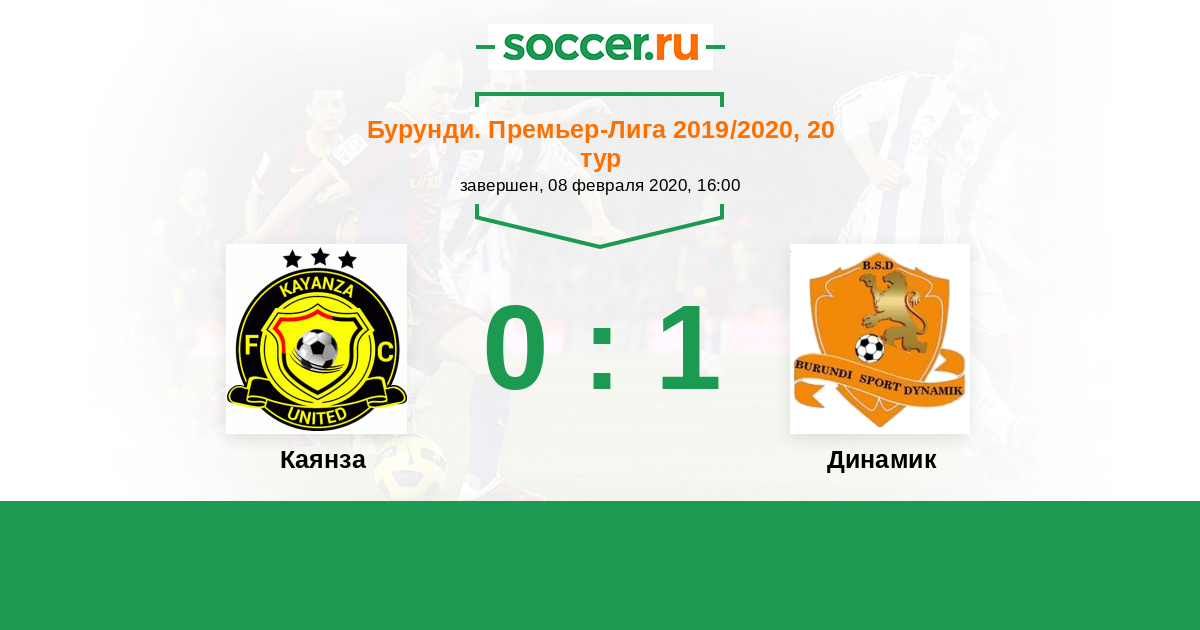 Бурунди. Премьер-лига 08.02.2020 Каянза Логотип футбольный клуб Каянза (Муйинга) 0:1 Логотип футбольный клуб Динамик (Бужумбура) Динамик