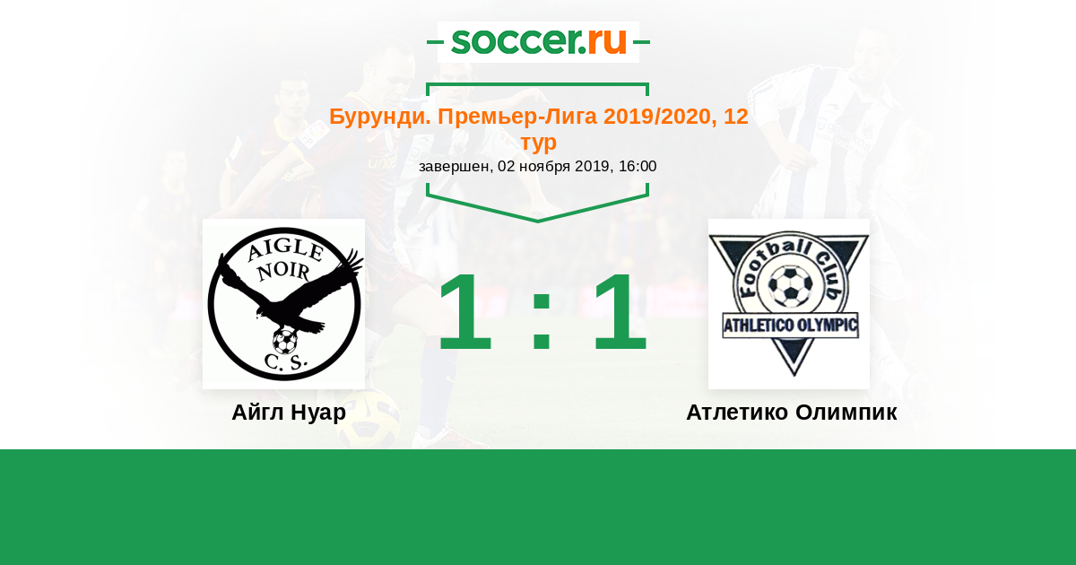 Бурунди. Премьер-лига 15.03.2020 Атлетико Олимпик Логотип футбольный клуб Атлетико Олимпик 1:5 Логотип футбольный клуб Айгл Нуар (Макамба) Айгл Нуар