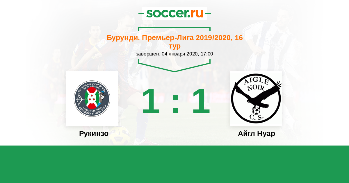 Бурунди. Премьер-лига 07.03.2020 Рукинзо Логотип футбольный клуб Рукинзо (Бужумбура) 2:0 Логотип футбольный клуб Каянза (Муйинга) Каянза