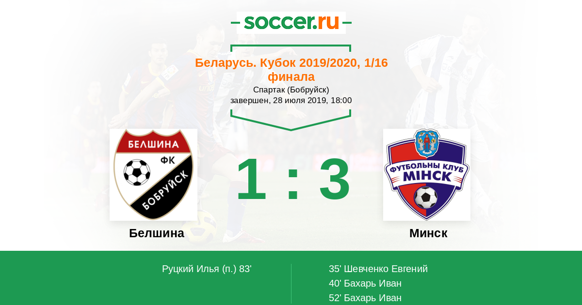 Беларусь. Высшая лига 05.07.2020 Минск Логотип футбольный клуб Минск 2:2 Логотип футбольный клуб Белшина (Бобруйск) Белшина
