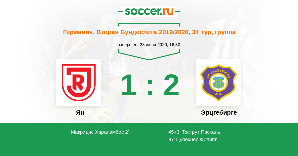 Германия. Бундеслига 2 01.04.2018 Ян Логотип футбольный клуб Ян (Регенсбург) 1:3 Логотип футбольный клуб Эрцгебирге (Ауэ) Эрцгебирге