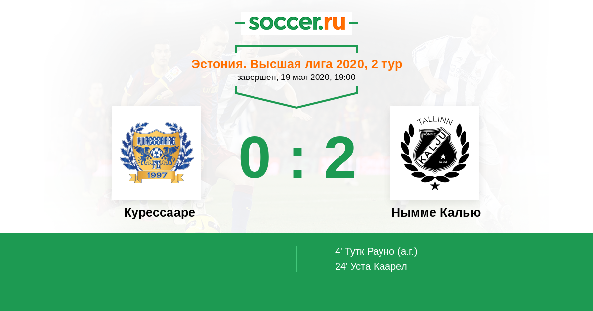 Эстония. Высшая лига 30.05.2021 Курессааре Логотип футбольный клуб Курессааре 0:2 Логотип футбольный клуб Нымме Калью (Таллин) Нымме Калью