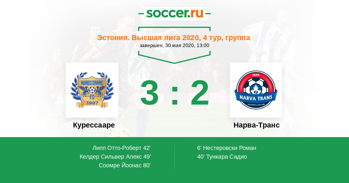 Эстония. Высшая лига 12.06.2010 Нарва-Транс Логотип футбольный клуб Нарва-Транс 3:0 Логотип футбольный клуб Курессааре Курессааре