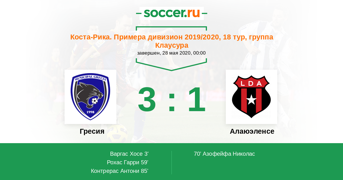 Коста-Рика. Примера дивизион 15.08.2019 Гресия Логотип футбольный клуб Гресия 1:3 Логотип футбольный клуб Алаюэленсе (Алаюэла) Алаюэленсе