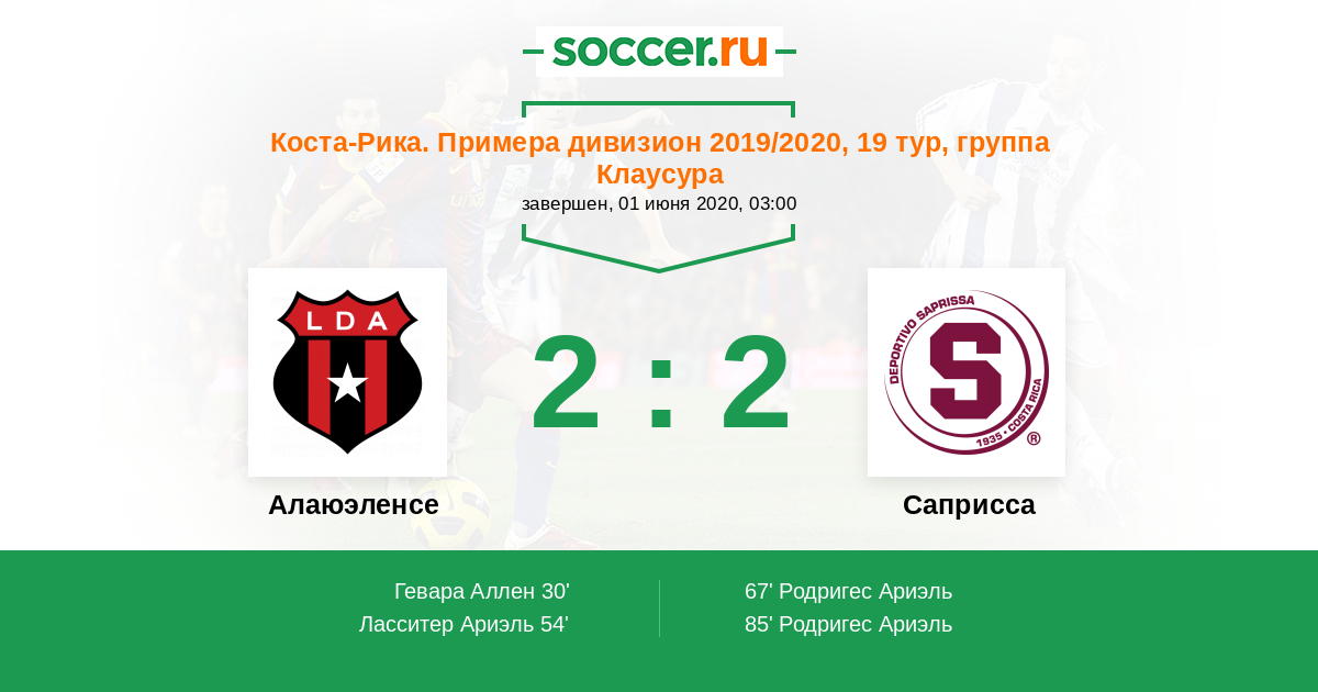 Коста-Рика. Примера дивизион 30.06.2020 Саприсса Логотип футбольный клуб Саприсса (Сан Хосе) 1:0 Логотип футбольный клуб Алаюэленсе (Алаюэла) Алаюэленсе