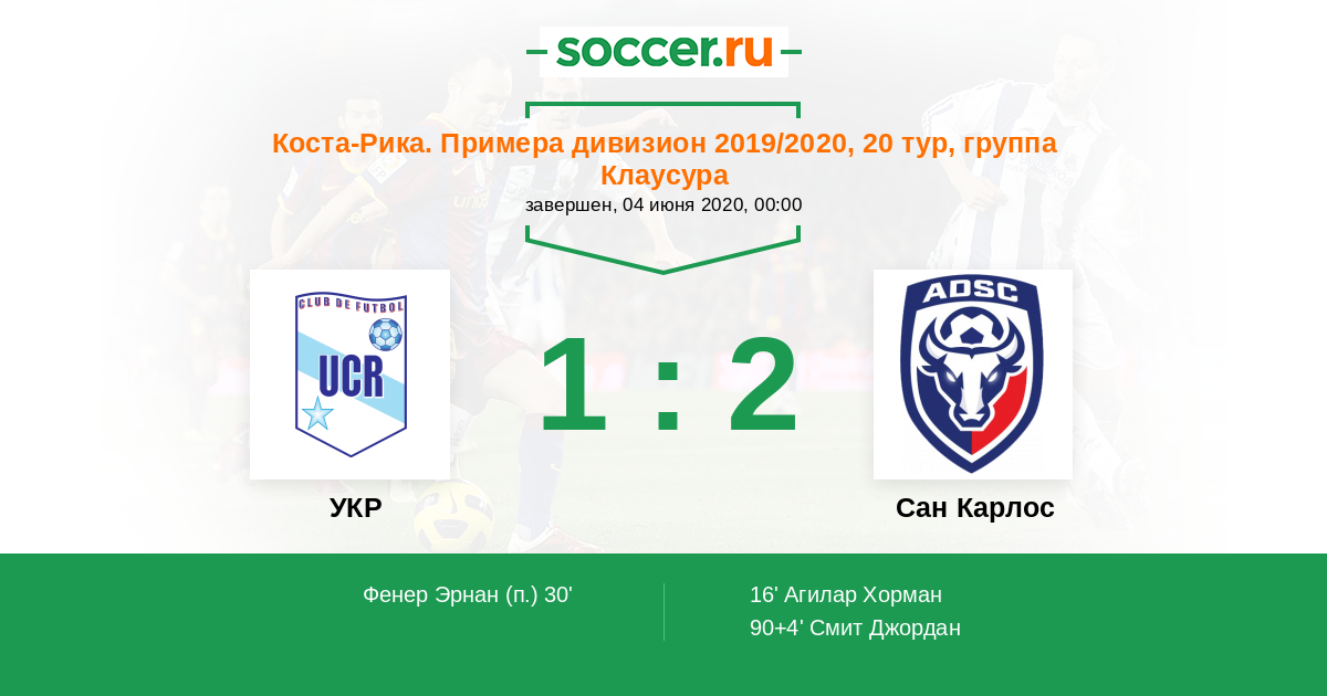 Коста-Рика. Примера дивизион 13.02.2020 Сан Карлос Логотип футбольный клуб Сан Карлос (Сьюдад Куэсада) 2:2 Логотип футбольный клуб УКР (Сан Хосе) УКР