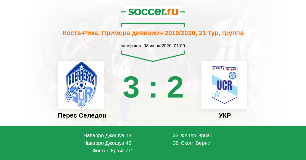 Коста-Рика. Примера дивизион 16.03.2014 Зеледон Логотип футбольный клуб Зеледон (Сан Исидро де Эль Хенерал) 2:1 Логотип футбольный клуб УКР (Сан Хосе) УКР