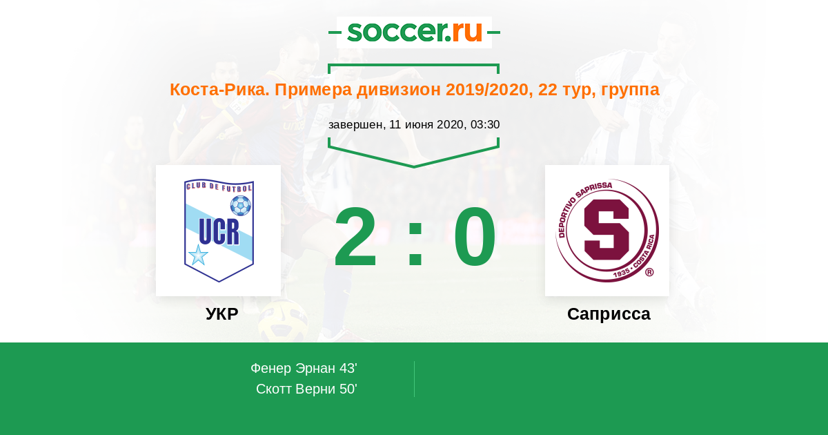 Коста-Рика. Примера дивизион 27.04.2014 УКР Логотип футбольный клуб УКР (Сан Хосе) 2:2 Логотип футбольный клуб Саприсса (Сан Хосе) Саприсса