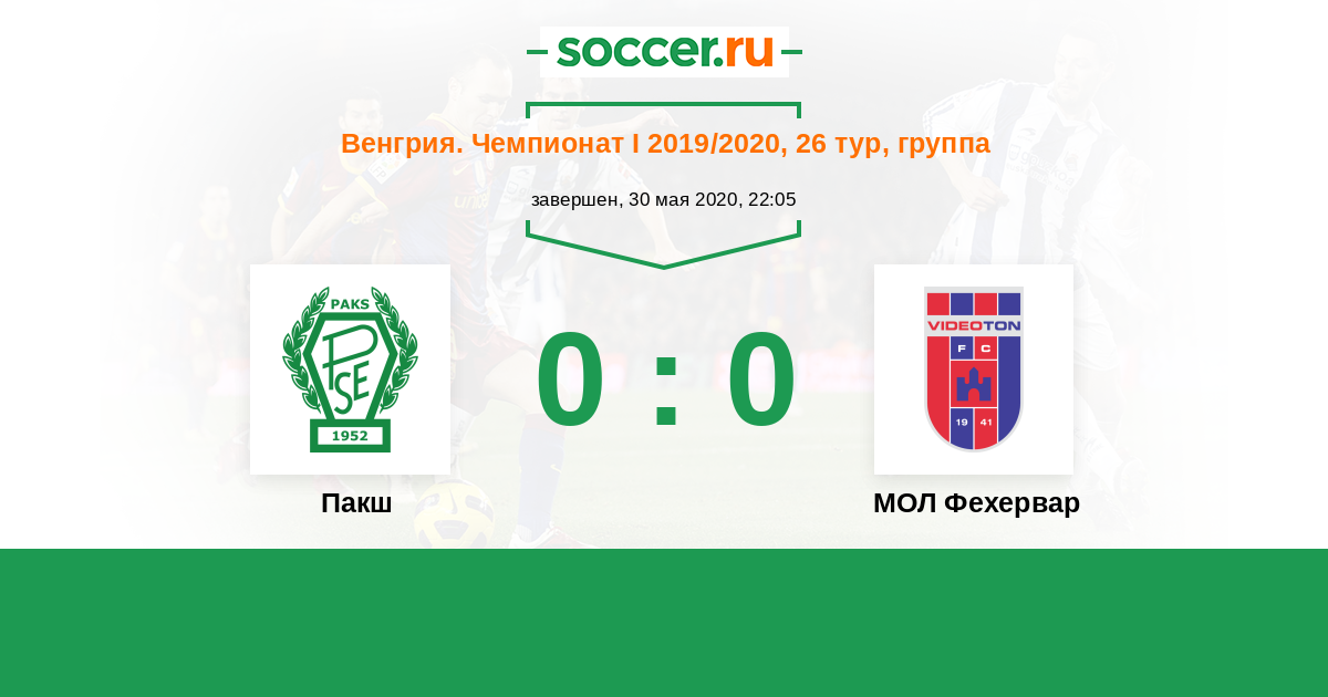 Венгрия. Чемпионат 1 22.08.2020 МОЛ Фехервар Логотип футбольный клуб МОЛ Фехервар (Секешфехервар) 1:1 Логотип футбольный клуб Пакш Пакш