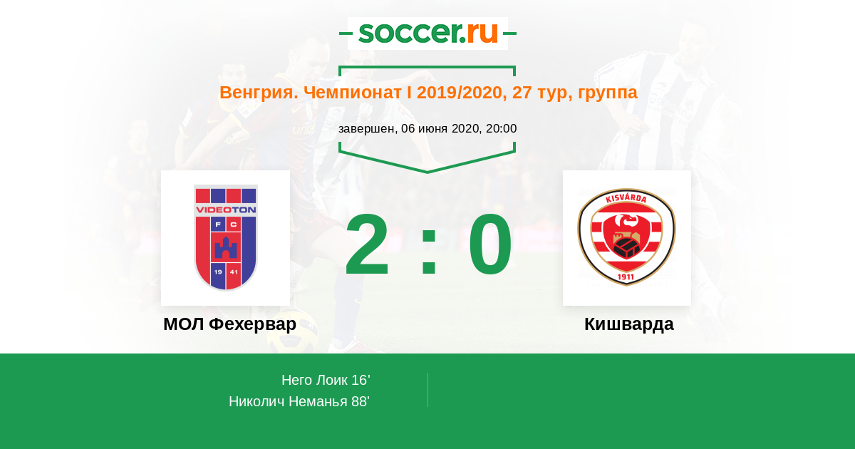 Венгрия. Чемпионат 1 18.12.2020 МОЛ Фехервар Логотип футбольный клуб МОЛ Фехервар (Секешфехервар) 3:0 Логотип футбольный клуб Кишварда Кишварда