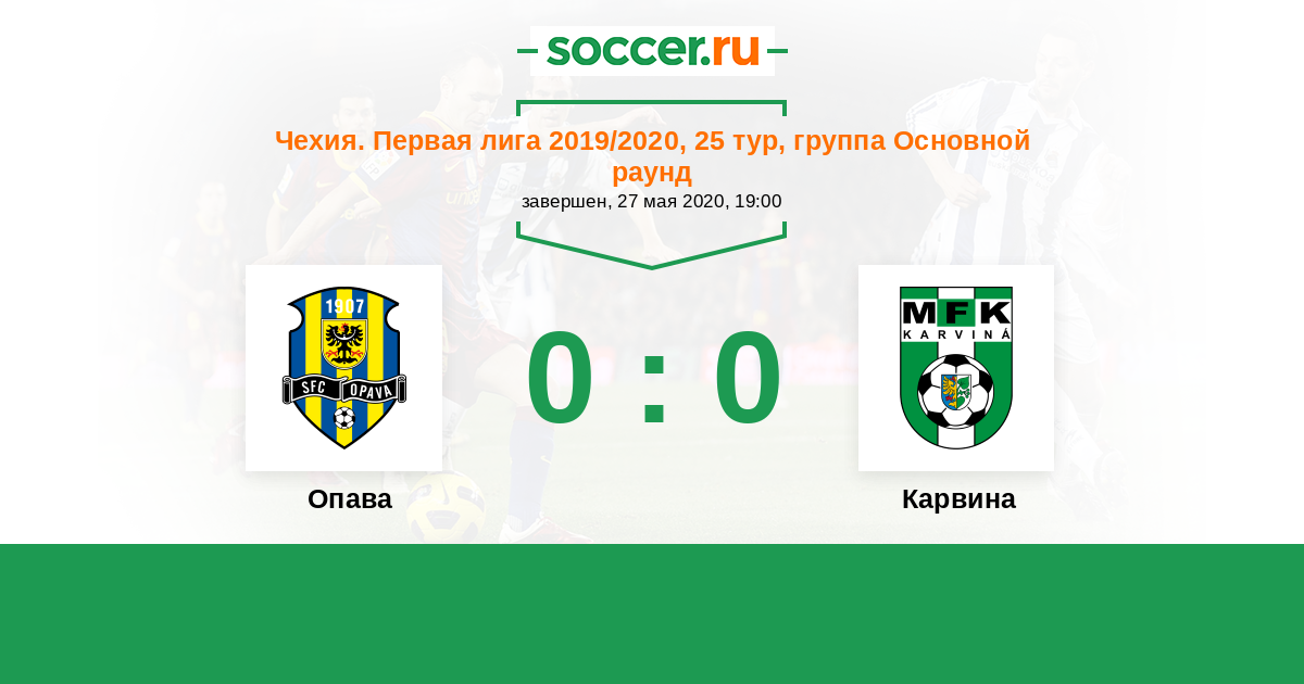 Чехия. Первая Лига 23.06.2020 Карвина Логотип футбольный клуб Карвина 0:0 Логотип футбольный клуб Опава Опава