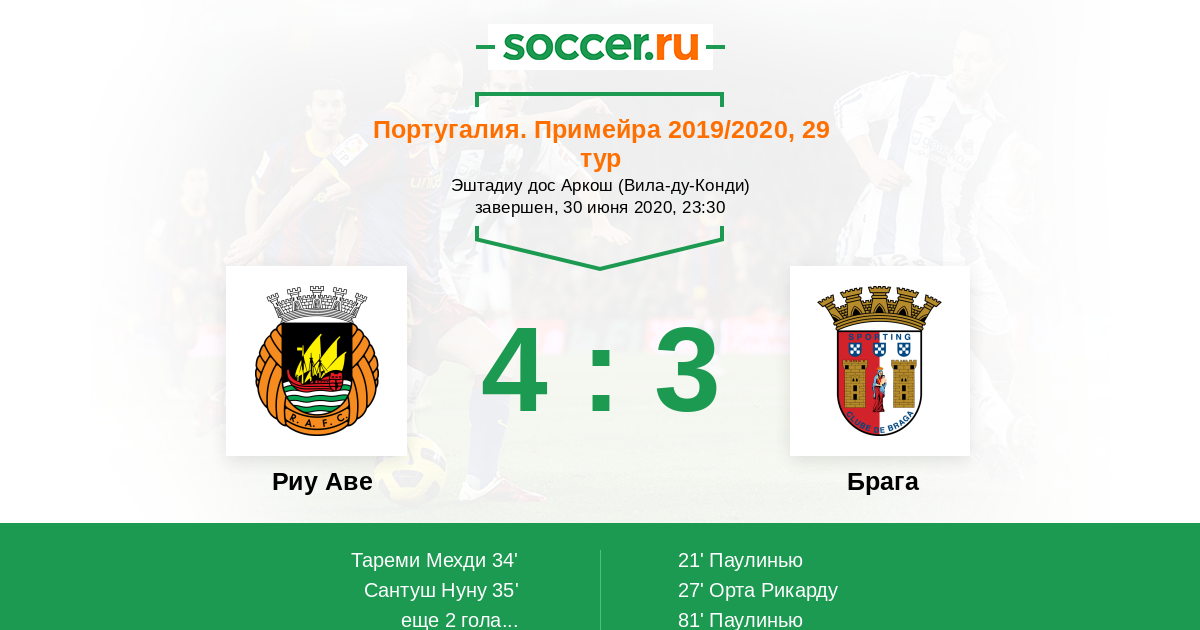 Португалия. Примейра 22.12.2020 Брага Логотип футбольный клуб Брага 3:0 Логотип футбольный клуб Риу Аве (Вила-ду-Конди) Риу Аве