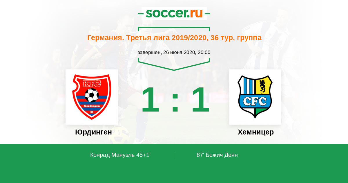 Германия. Третья лига 30.11.2019 Хемницер Логотип футбольный клуб Хемницер 1:1 Логотип футбольный клуб Юрдинген (Крефельд) Юрдинген