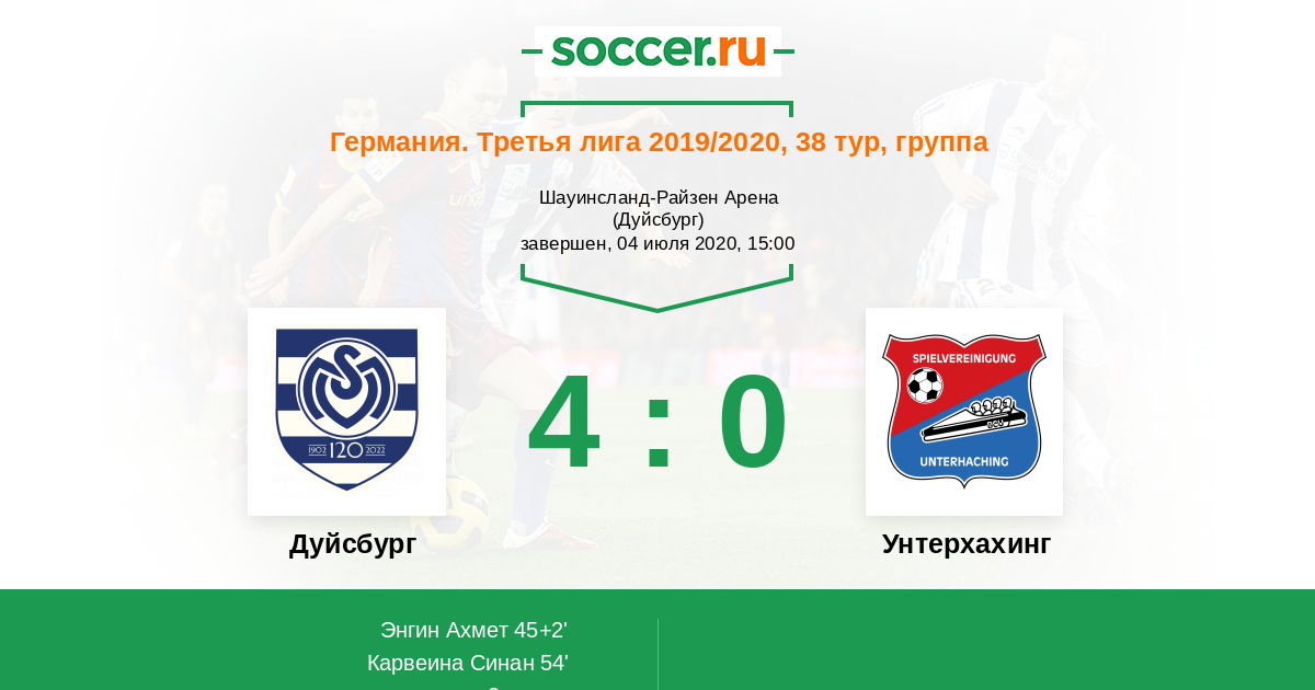 Германия. Третья лига 21.10.2020 Унтерхахинг Логотип футбольный клуб Унтерхахинг 0:1 Логотип футбольный клуб Дуйсбург Дуйсбург