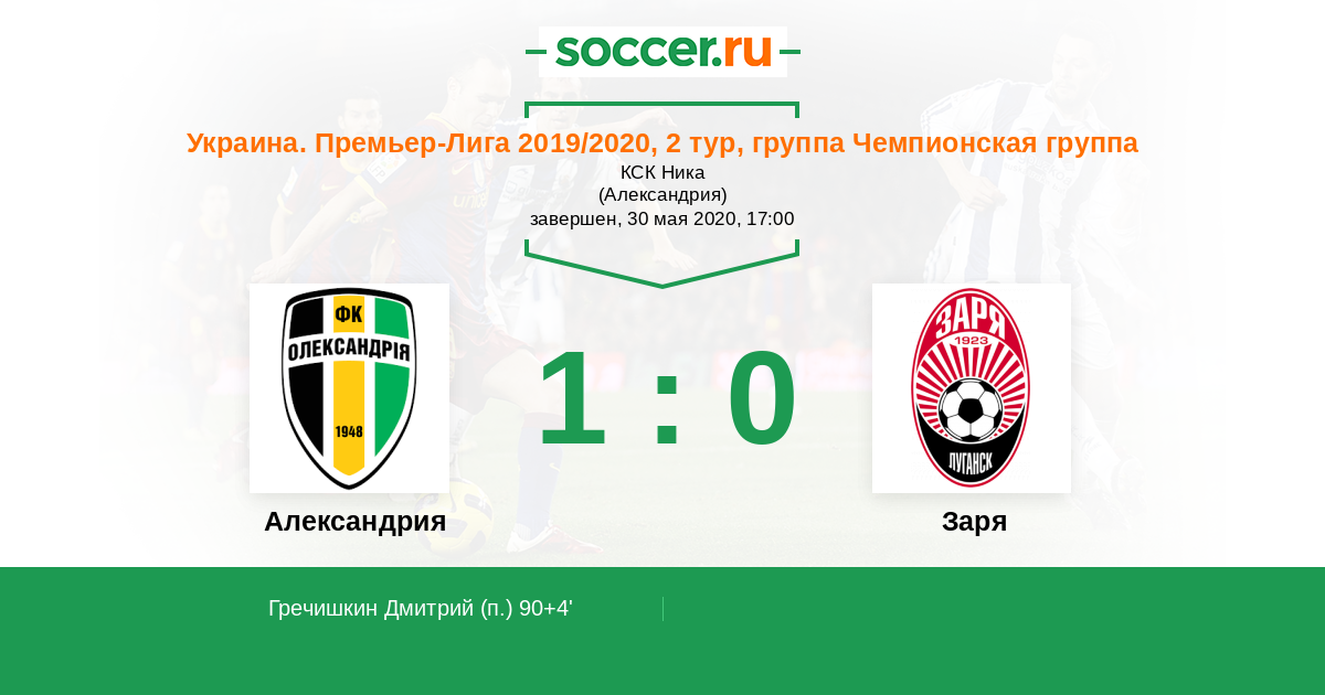 Украина. Премьер-Лига 05.07.2020 Заря Логотип футбольный клуб Заря (Луганск) 2:2 Логотип футбольный клуб Александрия Александрия