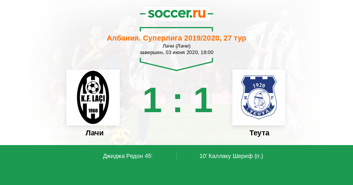Албания. Суперлига 20.03.2022 Лачи Логотип футбольный клуб Лачи 0:1 Логотип футбольный клуб Теута (Дуррес) Теута